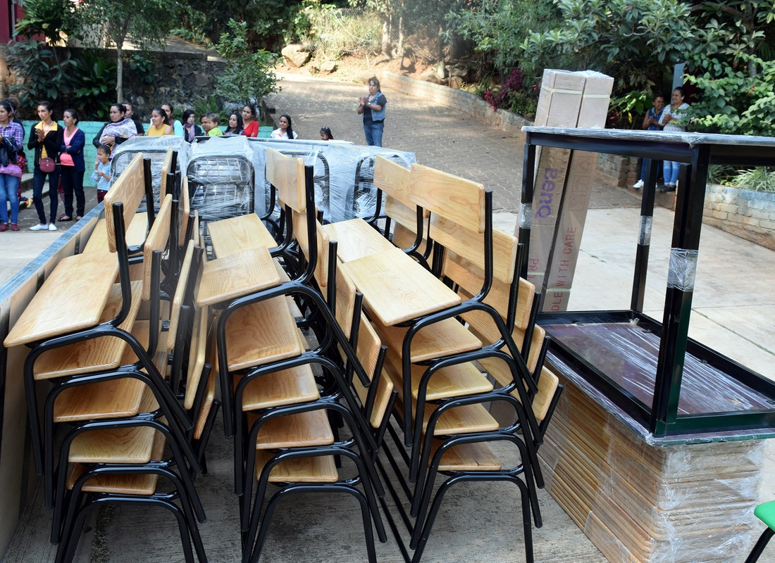 Acompañada de la diputada local por el Distrito de Tacámbaro, Rosalía Miranda Arévalo, la funcionaria estatal entregó mesabancos binarios, pintarrones, mesas para docente, sillas, video proyector, computadoras de escritorio, pantallas retráctiles, extinguidores y cestos, con una inversión superior a los 100 mil pesos en beneficio de 70 estudiantes.