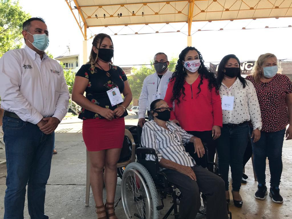 En Apatzingán, fueron dispersados 130 mil pesos en apoyo a 19 michoacanas emprendedoras, así como dos sillas de ruedas a mujeres con problemas de discapacidad motriz y tres kits de maternidad.
