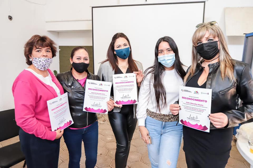 Durante la entrega de reconocimientos al personal del área de atención psicológica, jurídica y de trabajo social de la dependencia la funcionaria indicó: “ustedes han salvado vidas durante esta pandemia, se han capacitado y todos los días tienen una cara amable para atender a las mujeres, sus hijos e hijas que acuden en busca de ayuda a la Seimujer”.