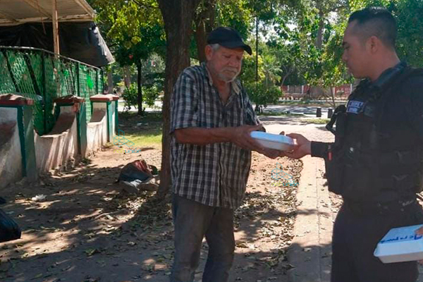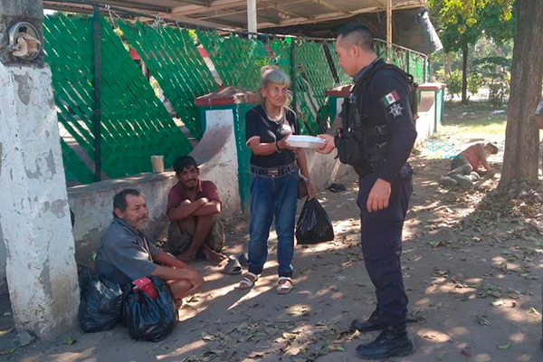 Un grupo de personas que viven en la calle y duermen en plazas y jardines, fueron atendidos por personal del área de proximidad social de la Guardia Civil en Apatzingán, ahí se les entregaron alimentos preparados y se les realizó una evaluación médica para verificar que no se encontraran golpeados o alguna enfermedad contagiosa.