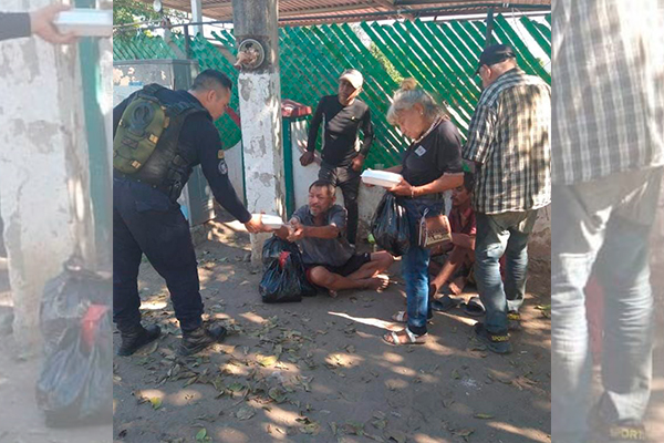 APATZINGÁN MICH., 25 de octubre del 2022.- Esta mañana vecinos de esta ciudad sorprendieron a un grupo de policías de la Guardia Civil, cuando llegaron ante un grupo de personas en situación de calle para entregarles alimentos calientes y tratar de apoyarlos con el apoyo de un médico.