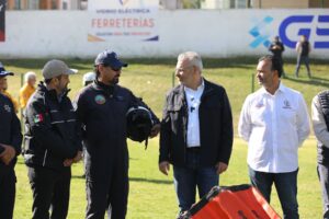 “La importancia del uso de helicópteros es para fortalecer el respaldo a nuestros brigadistas, para que tengan seguridad en el terreno, porque el respaldo aéreo les da esa confianza de que no están solos para combatir el incendio forestal”, resaltó el mandatario estatal, tras realizar la entrega de equipamiento.