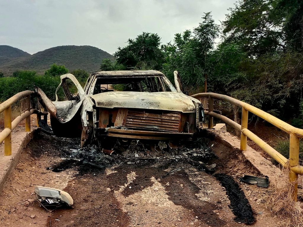 Durante la mañana de este domingo, autoridades recibieron un reporte sobre un vehículo carbonizado en una brecha ubicada entre huertas limoneras de la población de Las Bateas. En respuesta, elementos de la Guardia Civil, Ejército Mexicano y Guardia Nacional desplegaron un operativo en la zona.