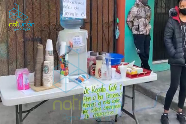 Las horas de espera son inciertas y diversos morelianos acuden a formarse desde temprana hora, muchos de ellos sin la certeza de probar bocado, ante dicha situación un grupo de personas se solidarizaron con los familiares de los pacientes con Covid.19 y decidieron regalar desayunos.