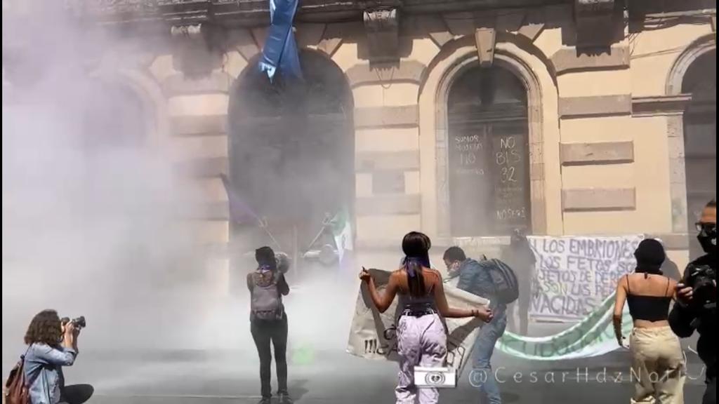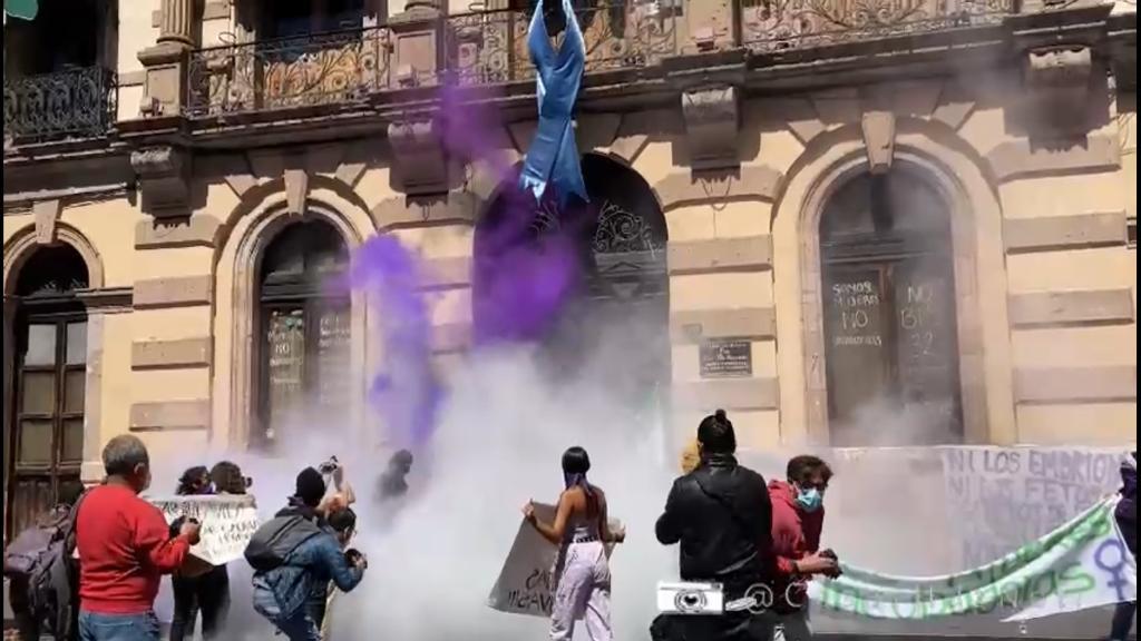 Además la Red De Colectivas Feministas decidieron salir a las calles y manifestarse de forma presencial en las puertas del Congreso del Estado De Michoacán, lugar donde un elemento policiaco intentó reprimir el derecho a la libre manifestación, pidiéndoles a las manifestantes que se retirarán para que los vehículos lograran transitar libremente.