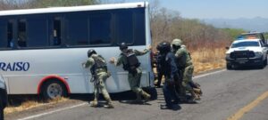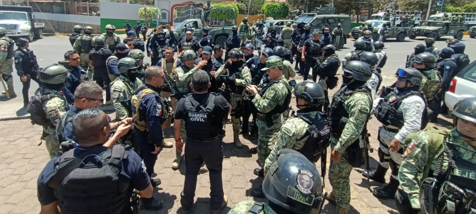 Peribán-Los Reyes.- 3 de junio del 2023.- Elementos de Guardia Civil de la Secretaría de Seguridad Pública (SSP), de la Fiscalía General del Estado, de la Guardia Nacional y del Ejército Mexicano realizaron un despliegue operativo en Peribán y Los Reyes para garantizar el libre tránsito, con lo cual tomaron el control y despejaron las vialidades.