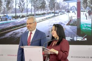 Morelia, Michoacán, 19 de mayo de 2025.- Más de 45 mil personas se beneficiarán con la ampliación de la avenida Amalia Solórzano de la ciudad de Morelia, anunció la secretaria de Desarrollo Urbano y Movilidad (Sedum), Gladyz Butanda Macías, en rueda de prensa encabezada por el gobernador, Alfredo Ramírez Bedolla.