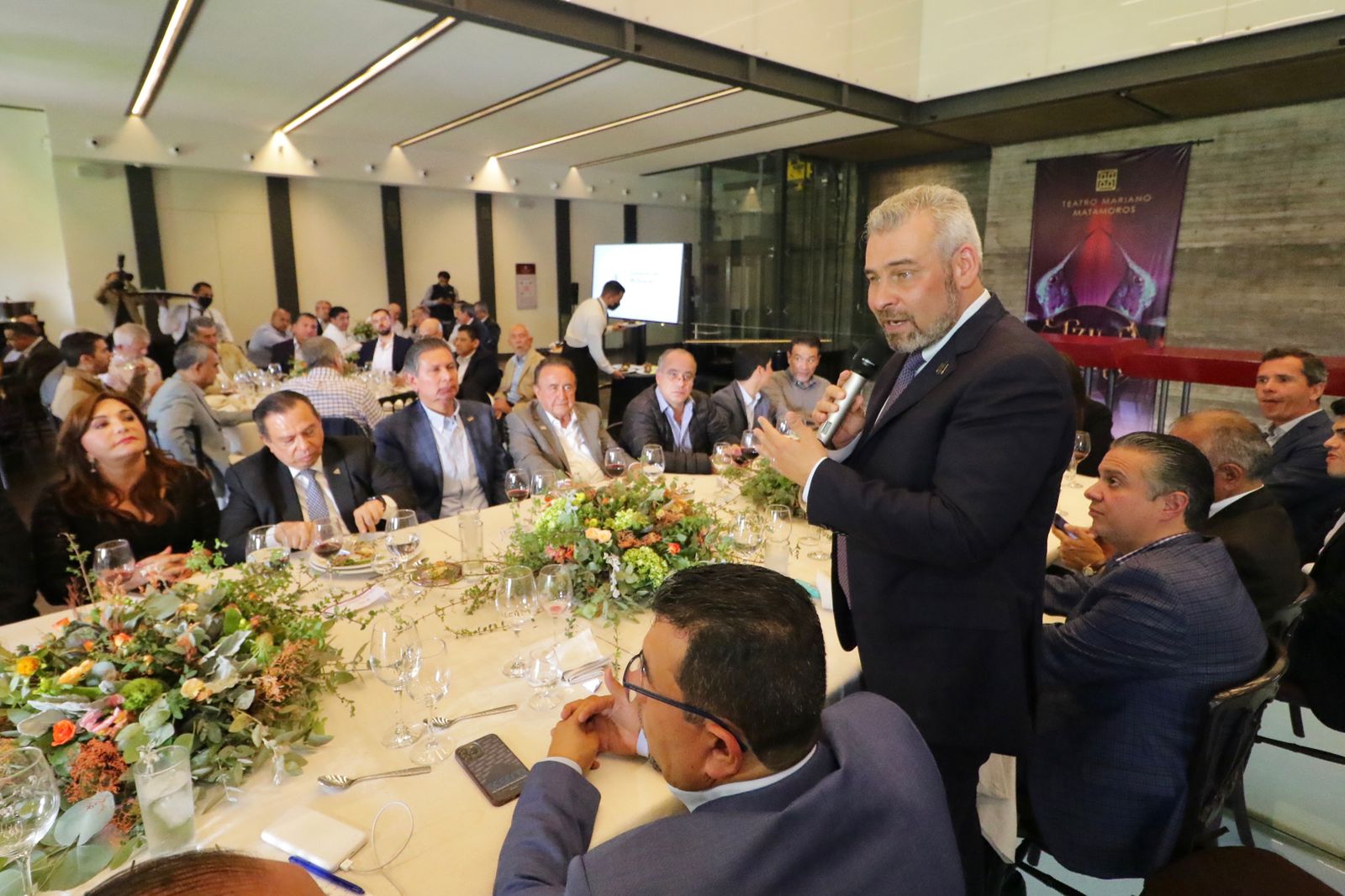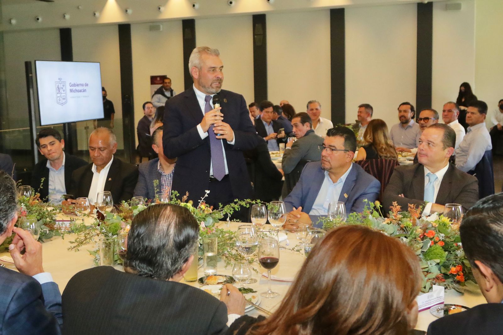 En reunión con empresarios, asociaciones y presidentes municipales, el gobernador Alfredo Ramírez Bedolla destacó que con la formalización de alianzas con la Asociación Michoacana de Distribuidores de Automóviles, Banbajío, el Consejo Coordinador Empresarial (CCEEM), la Cámara Nacional de Comercio (Canaco) y el Fideicomiso del Impulso y Desarrollo para el Estado de Michoacán (Fidemich), incrementará la productividad económica y el desarrollo para beneficio de las y los michoacanos.