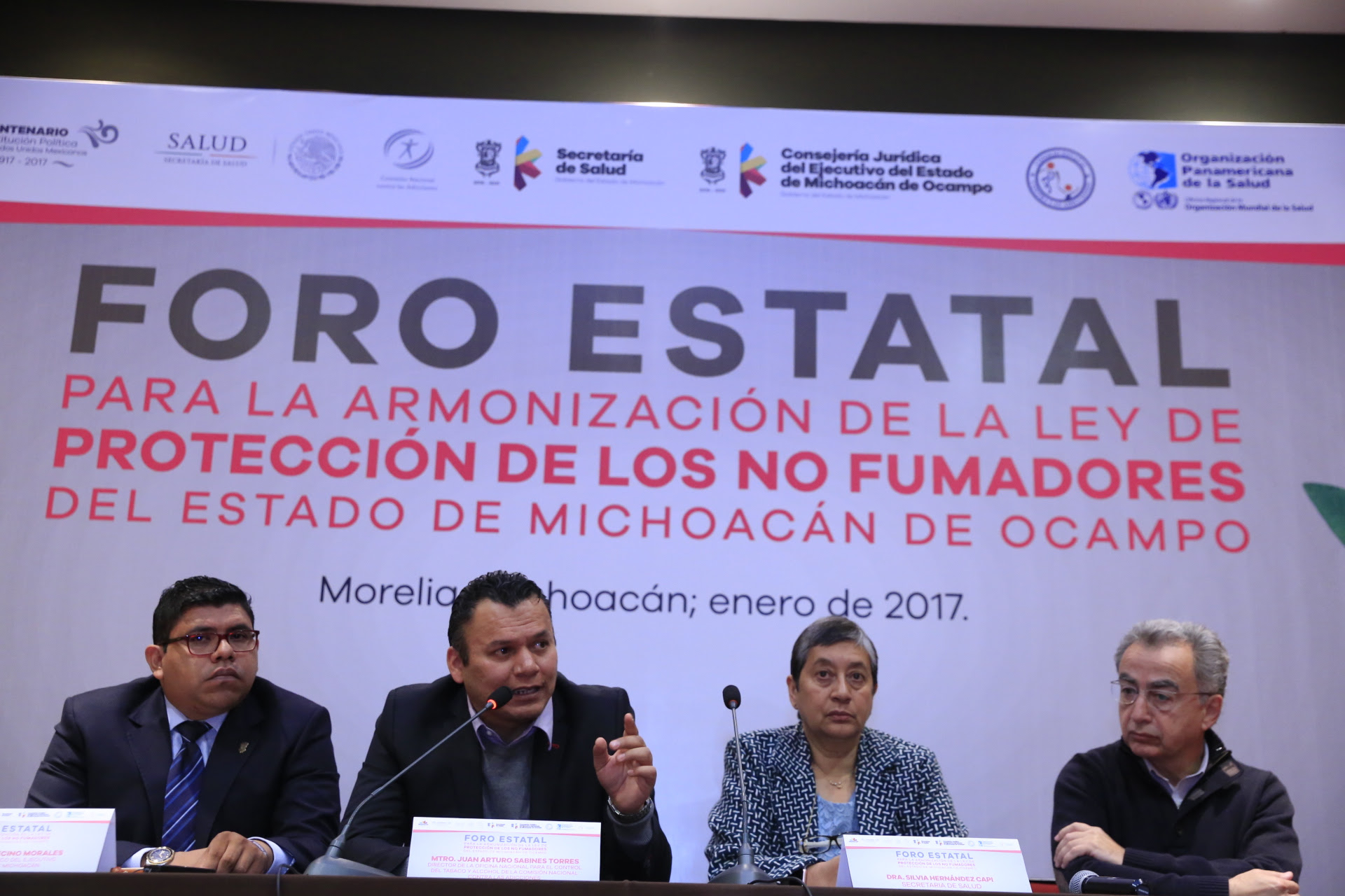 Morelia, Michoacán, a 19 de enero de 2017.- A fin de impulsar la actualización de la Ley de Protección de los No Fumadores y colocar a Michoacán como el segundo estado del Centro Occidente del país 100 por ciento libre de humo de tabaco, el próximo lunes en Casa de Gobierno se llevará a cabo el Foro Estatal de Información para la Armonización de la Ley de Protección de los No Fumadores, anunció Juan Arturo Sabines Torres, Director de la Oficina Nacional para el Control de Tabaco y Alcoholismo del Consejo Nacional Contra las Adicciones (Conadic).