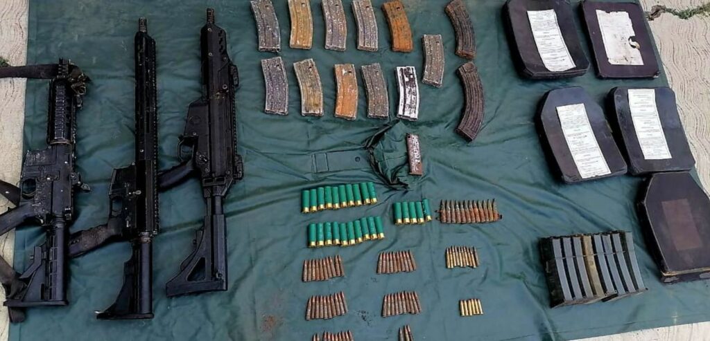 En Aguililla, los efectivos de seguridad mantenían patrullajes de reconocimiento sobre la localidad Naranjo Viejo, momento en el cual localizaron los siguientes artículos: