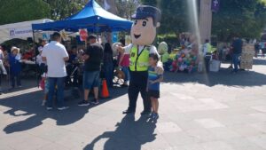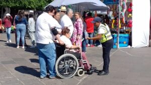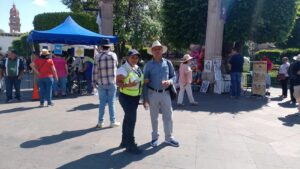 Ante las altas temperaturas durante los días santos, los uniformados regalaron botellas de agua a los paseantes en el Centro Histórico de Morelia, para salvaguardar su salud.