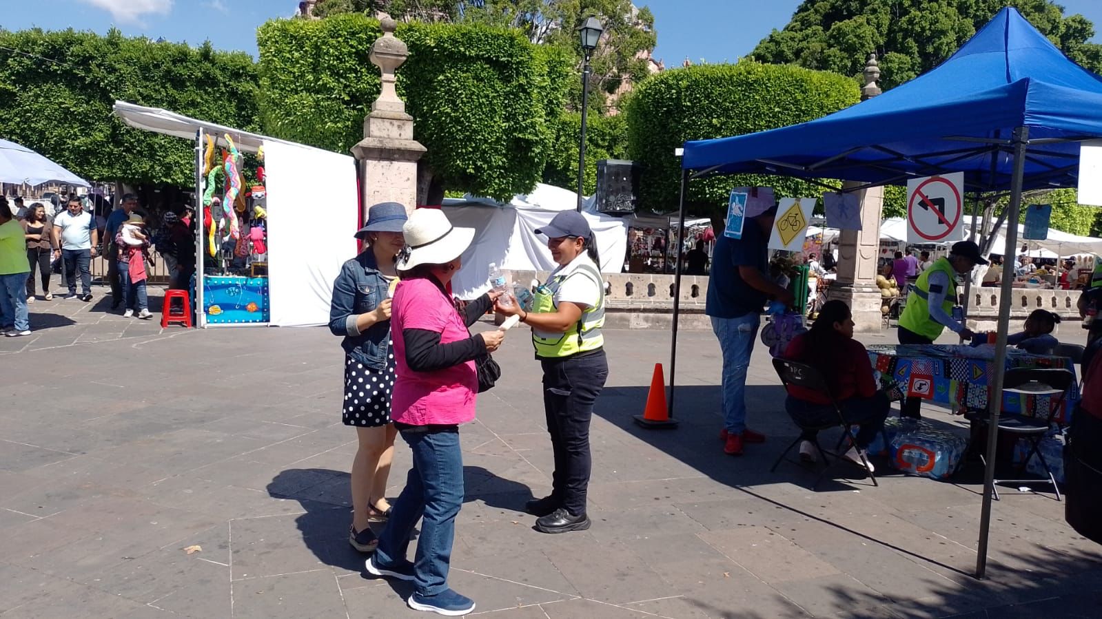 Fueron cientos de botellas con agua las que se repartieron en varios puntos del centro moreliano, dando también atención a las dudas de los paseantes.