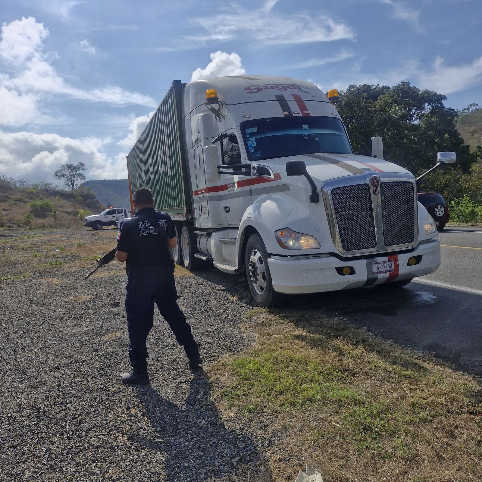 Lázaro Cárdenas, Michoacán.- Un tractocamión robado con violencia en la autopista Siglo XXI fue recuperado gracias a la rápida intervención de la Secretaría de Seguridad Pública (SSP) y la Guardia Nacional.