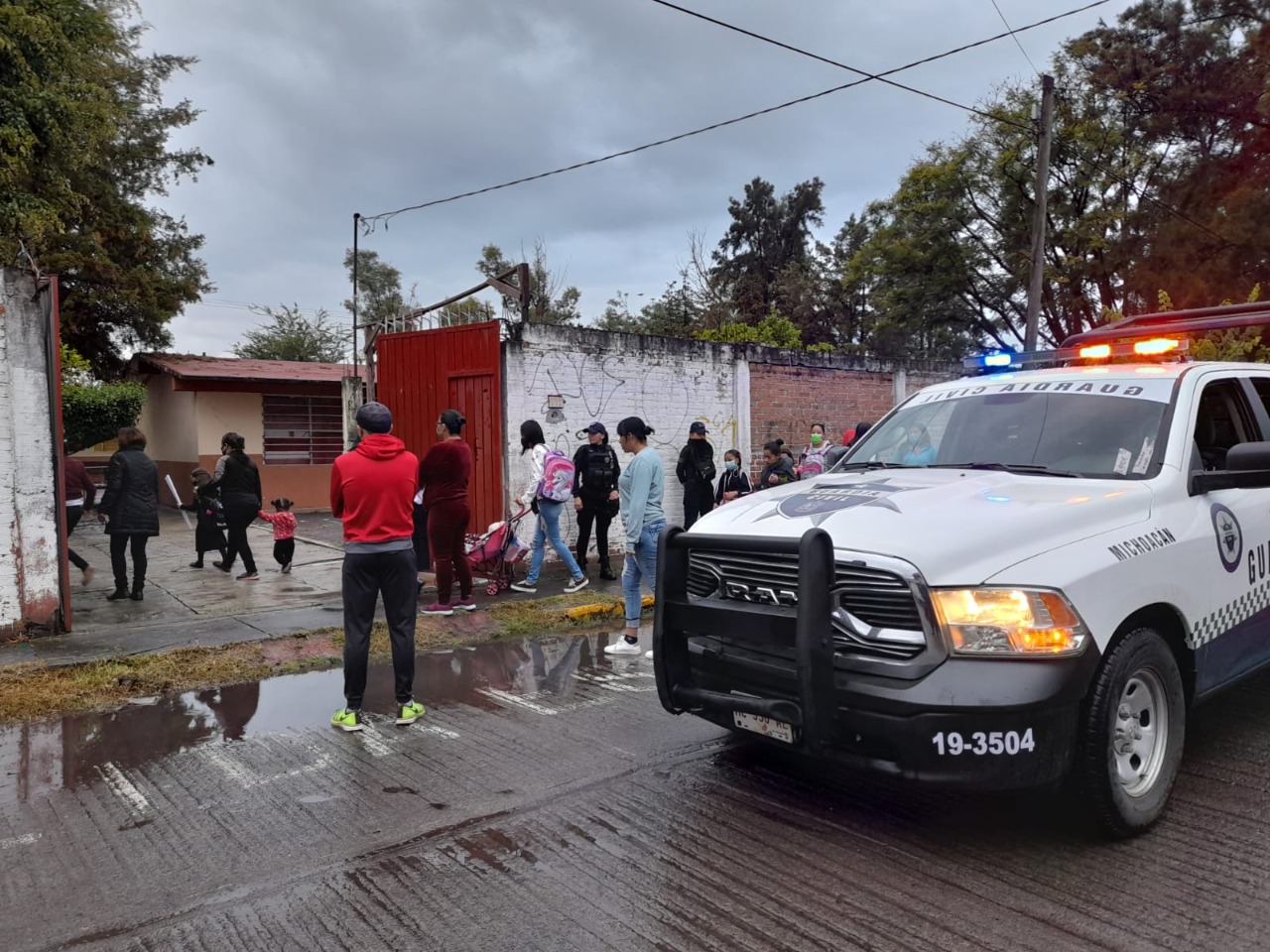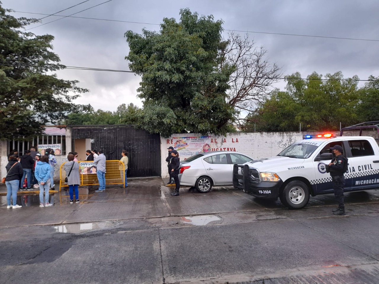 Ante el regreso oficial a clases presenciales de miles de estudiantes michoacanos, agentes de la SSP brindan seguridad perimetral y acciones de proximidad social.