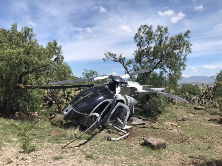 Un helicóptero MD-530F de la Fuerza Aérea Mexicana (FAM) se precipitó a tierra cuando finalizaba una serie prácticas y estaba de regreso a la Base Aérea Militar Número 1 (BAM-1) de Santa Lucía, en donde está el escuadrón al que pertenece.
