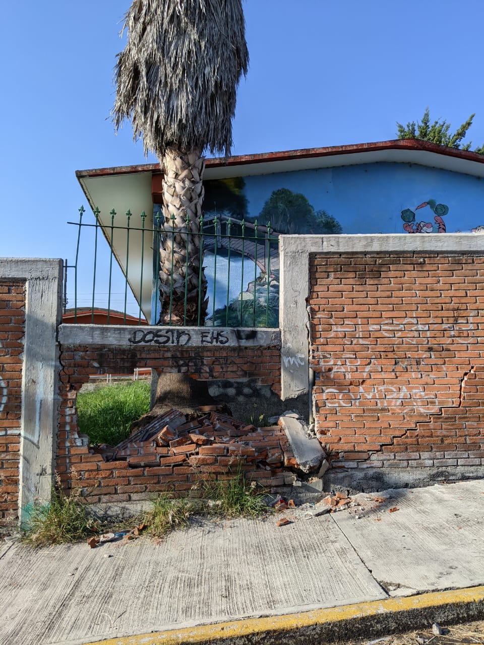 Morelia, Michoacán a 21 de julio del 2023.- En la madrugada de este viernes la pared de un Kínder de la ciudad de Morelia fue derrumbada por un hombre que manejaba en estado de ebriedad.