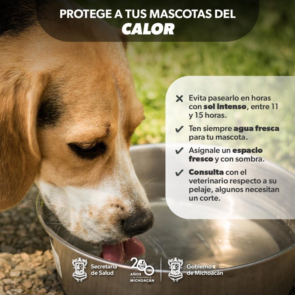 Morelia, Michoacán, 28 de mayo de 2024.- Jadeo rápido, ojos rojos, vómito, temblores o somnolencia, son signos de alarma de deshidratación y golpes de calor en las mascotas, por lo que será necesario acudir de inmediato al veterinario para que reciban atención de emergencia, alertó la Secretaría de Salud de Michoacán (SSM).