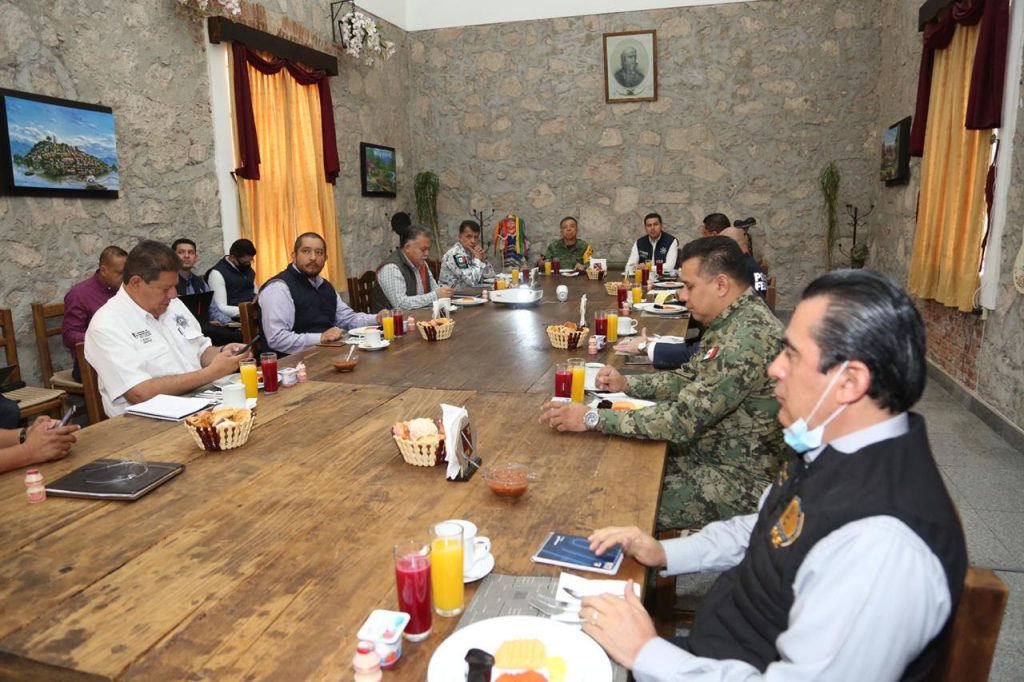 Morelia, Michoacán, a 11 de abril de 2020.- Integrantes de la Mesa de Coordinación para la Construcción de la Paz revisaron los avances de las acciones implementadas para evitar la propagación de COVID-19 entre la población.