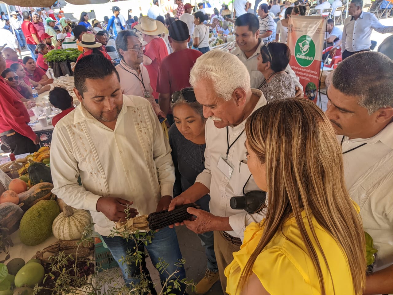 En esta ocasión, los técnicos de Agrosano, expusieron productos como carambolos, cacao, toronjas y maíces criollos que fueron trabajados con los conocimientos ancestrales de las comunidades que han recibido el programa Agrosano. Además, se mostró chía silvestre, cacahuates, ajonjolí, jamaica; esquilmos agrícolas, melaza y minerales.