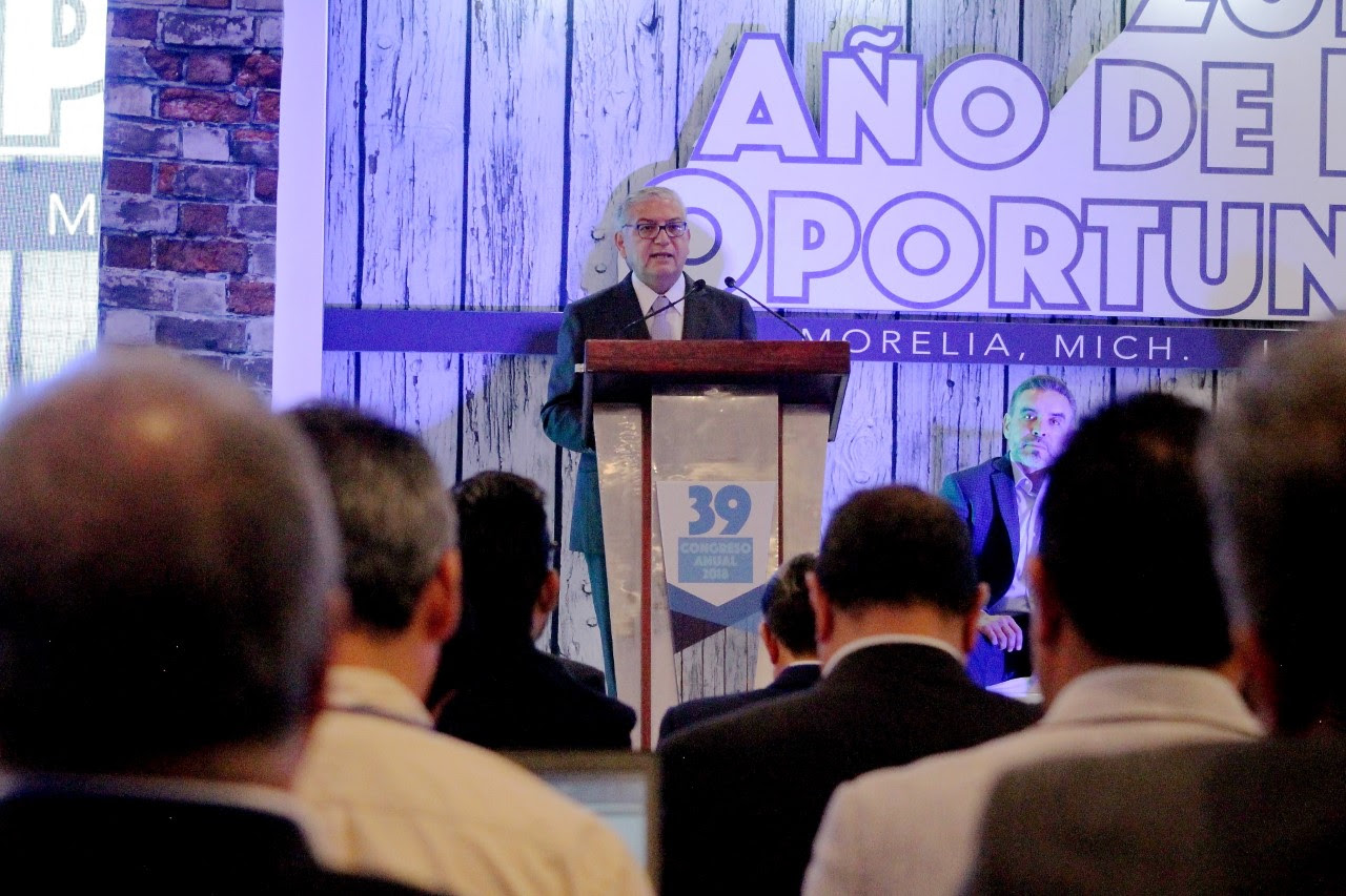 Morelia, Michoacán, a 23 de agosto de 2018.- Con la representación del Gobernador del Estado, Silvano Aureoles Conejo, el secretario de Finanzas y Administración, Carlos Maldonado Mendoza, ofreció las palabras de bienvenida en la inauguración del Congreso Anual «2018: Año de Retos y Oportunidades».