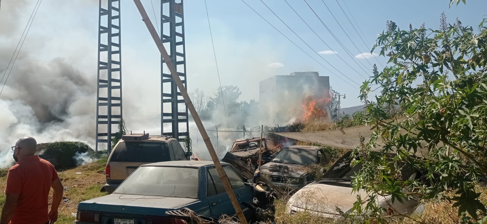 Morelia, Michoacán 8 de marzo 2023.-En la tarde de hoy, un incendio de pastizal se desató en un corralón ubicado en las afueras de la ciudad, el cual afectó una veintena de carros abandonados en el lugar.