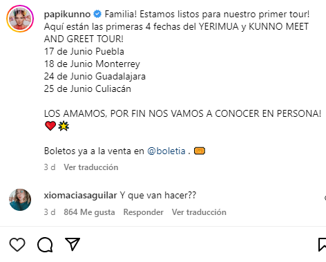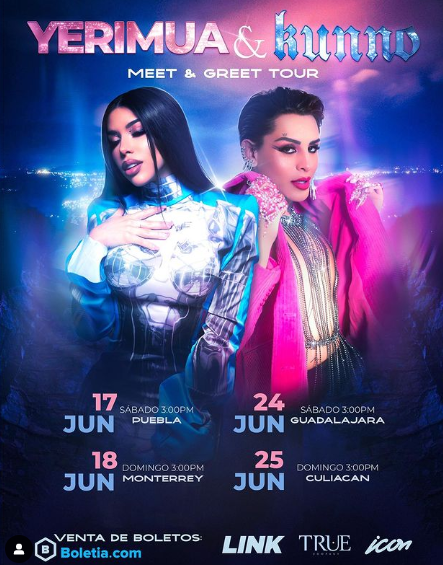 Así como lo lees, por medio de redes sociales, postearon una imagen donde aparecen muy futuristas anunciando su «YERIMUA y KUNNO MEET AND GREET TOUR» donde tienen algunas fechas por la República Mexicana.