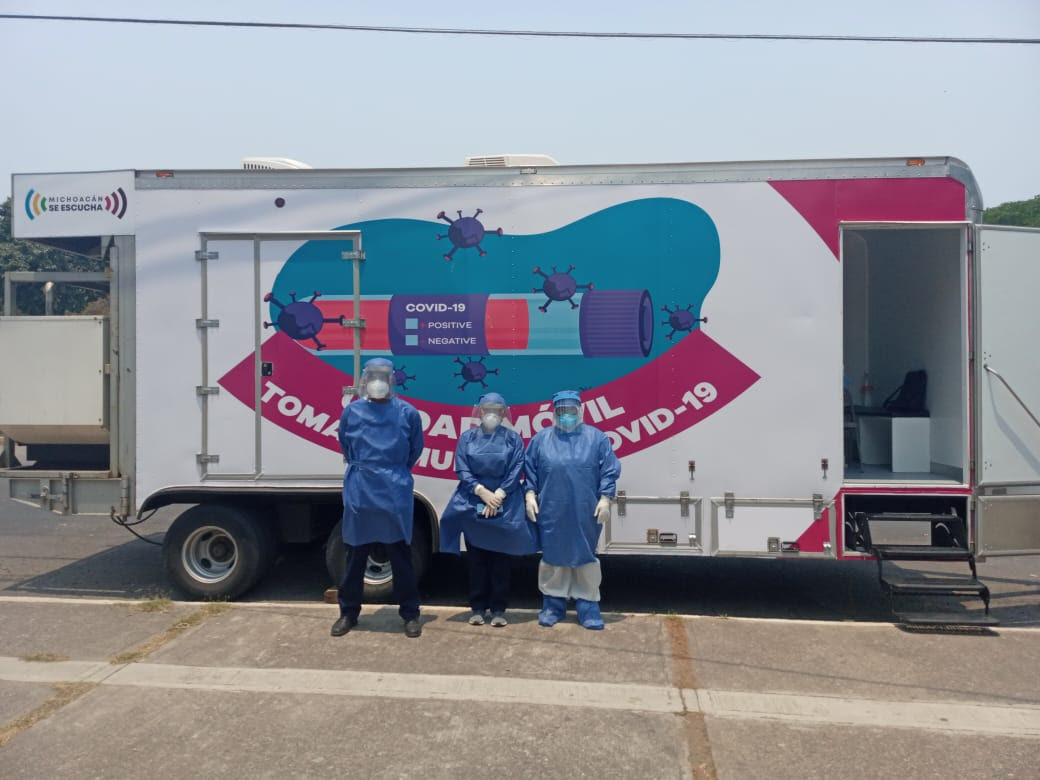 Morelia, Michoacán, a 01 de junio del 2020.- Con el objetivo de fortalecer la detección de casos de COVID-19, la Secretaría de Salud de Michoacán (SSM), instaló en Apatzingán y Uruapan, una unidad móvil de toma de muestra en cada municipio.