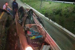 En el lugar el joven que conducía un auto compacto, perdió el control del volante y se impactó contra la barra, lo que ocasionó que la unidad quedara incrustada completamente.