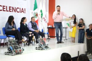 Asimismo, subrayó que este acto simboliza el respaldo institucional al talento juvenil y el impulso permanente a la ciencia, la tecnología y la innovación. Recordó que, en la edición anterior del mundial, celebrada en Dallas, Texas, los equipos del Cecytem lograron posicionarse en el lugar 20 entre más de 400 participantes, por lo que afirmó que en este año podrían alcanzar los primeros lugares.