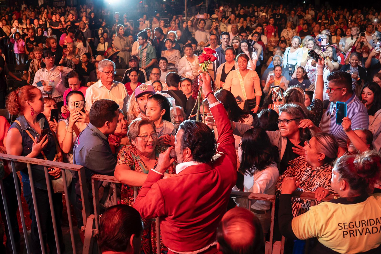 Morelia, Michoacán, 5 de mayo de 2025.- Pablo Montero llenó de sentimiento, nostalgia y música ranchera el Festival Michoacán de Origen (FMO), que este domingo reunió a mujeres de distintas edades que acudieron a ver el concierto del también actor.