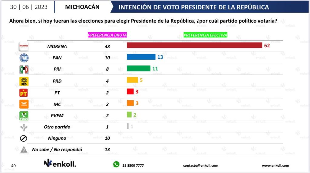 ¿Cuáles son los resultados de la encuesta partidista Enkoll en Michoacán?