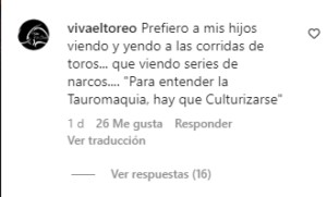 «PONTE DE ACUERDO CONTIGO MISMA KATE, DESAPRUEBAS LA TAUROMAQUIA PERO INCITAS A LA VIOLENCIA CON TU TRABAJO EN SERIES DE NARCOS» se puede leer en algunos comentarios.
