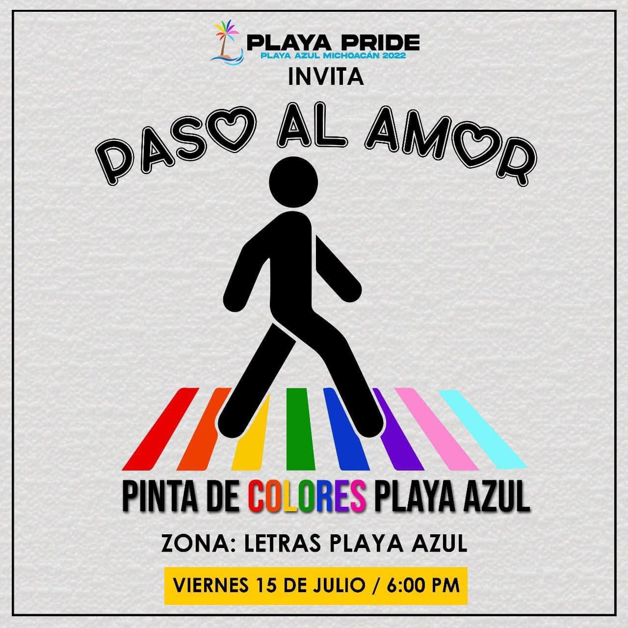 • Viernes 15: Pinta de paso peatonal con los colores de la bandera LGBT+ en el principal crucero de Playa Azul. “Pinta con amor”.