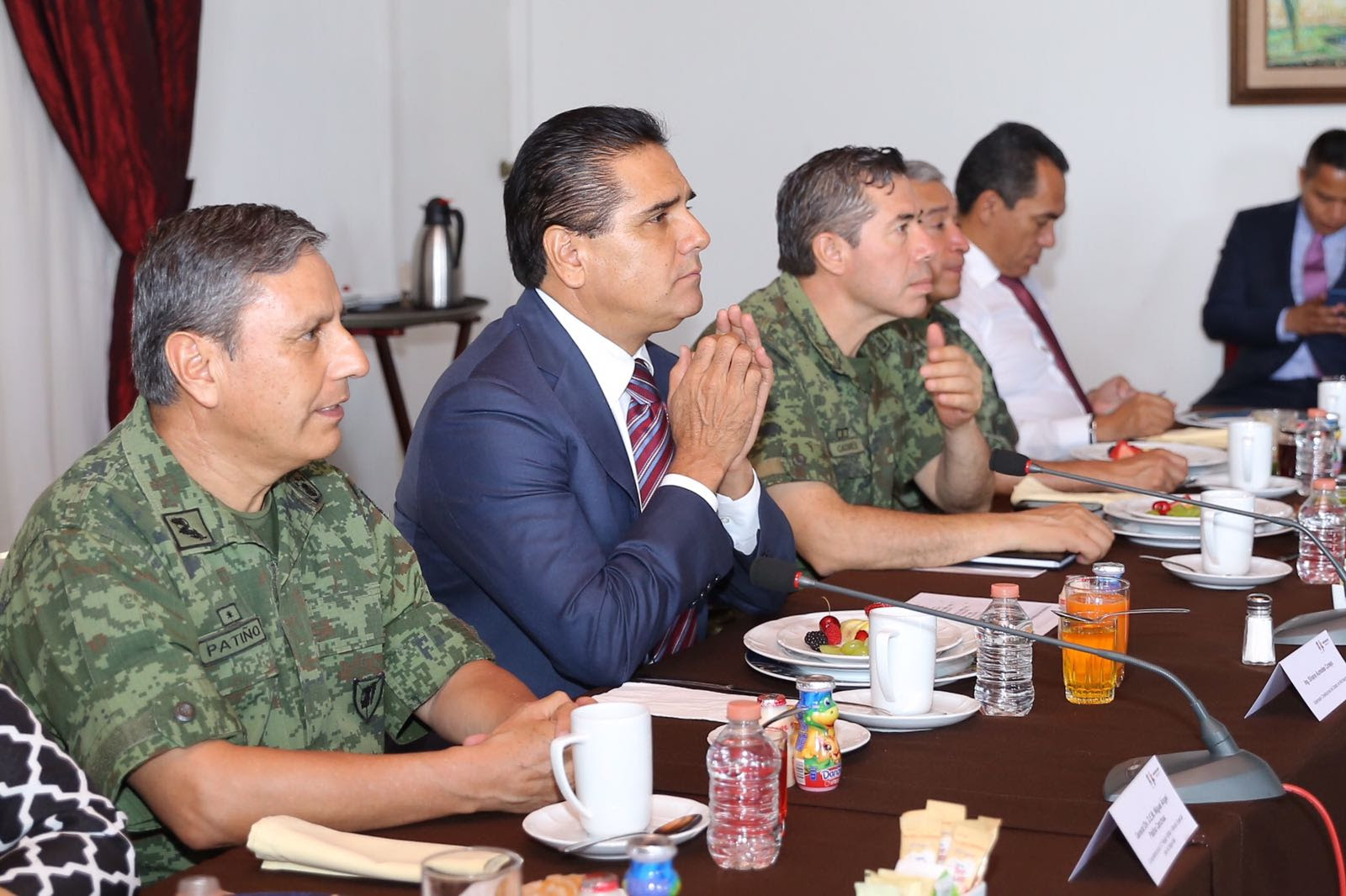 En esta reunión de trabajo participaron el secretario de Gobierno, Adrián López Solís; el comandante de la XII Región Militar, general Miguel Ángel Patiño Canchola; el secretario de Seguridad Pública, Juan Bernardo Corona Martínez; el procurador de Justicia del estado, José Martín Godoy Castro; la delegada de la Procuraduría General de la República, Bertha Paredes Garduño.