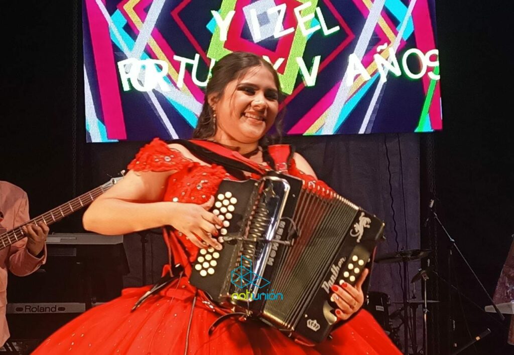 Agradeciendo a Dios la dicha de cumplir años, Yizel celebró en compañía de sus padres, familiares, amigos y fans. Con un hermoso vestido de color rojo, subió al escenario para deleitar a los presentes haciendo lo que más le apasiona, tocando su acordeón.