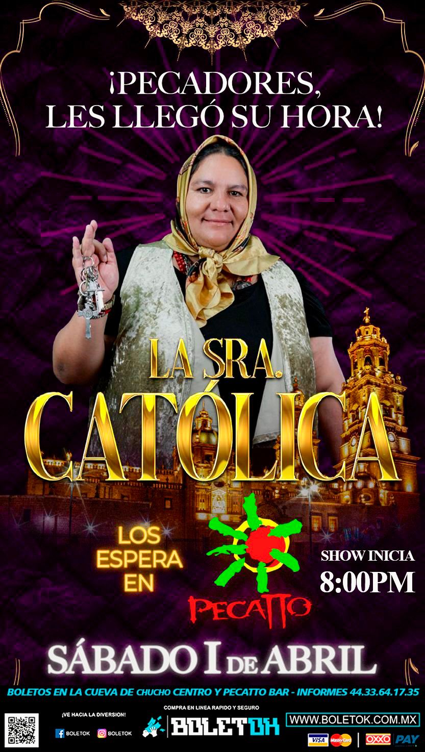 Los boletos están a la venta en La Cueva De Chucho Centro, Pecatto Bar, así como en la página en línea https://boletok.ordenaboletos.com.mx/artes-escenicas/la-sra-catolica-morelia-174.»