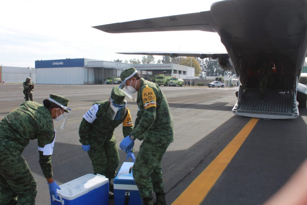 Morelia, Michoacán a 20 de enero de 2021.- La mañana de este miércoles arribó al Aeropuerto Internacional de Morelia “Francisco J. Múgica”, la aeronave “CASA C-295” con 3,900 dosis de la vacuna contra COVID-19 de la alianza farmacéutica Pfizer-BioNTech, así como insumos para su aplicación.