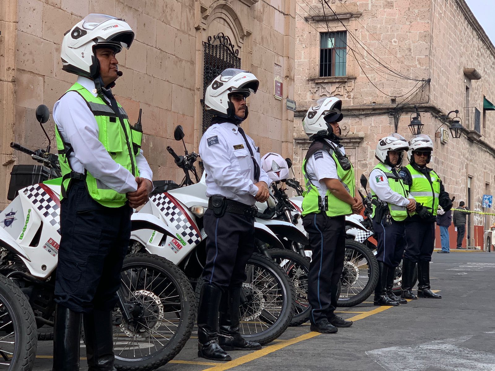 Mediante supervisiones operativas en las inmediaciones, mismas que se hacen previo y durante el evento, patrullajes, recorridos pie-tierra y puntos de revisión, es como los uniformados garantizan la tranquilidad de las y los michoacanos. De igual manera, el personal de Tránsito y Movilidad del estado, efectúan las acciones pertinentes, a fin de garantizar un correcto tránsito vehicular durante el acto cívico.