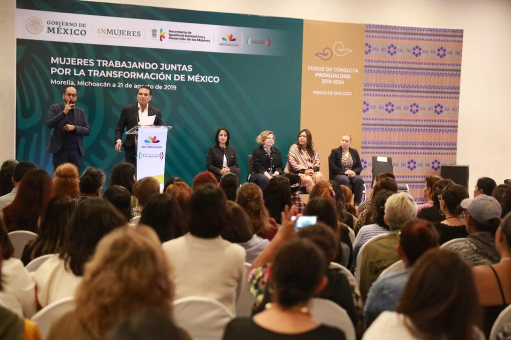 Morelia, Michoacán, a 22 de agosto de 2019.- Con un llamado a fortalecer la voz de defensoras, activistas, víctimas y liderazgos del sector femenino para construir una sociedad más igualitaria y justa, el Gobernador de Michoacán, Silvano Aureoles Conejo, inauguró el Foro Estatal para la elaboración del Programa Nacional para la Igualdad entre Hombres y Mujeres 2019-2024.
