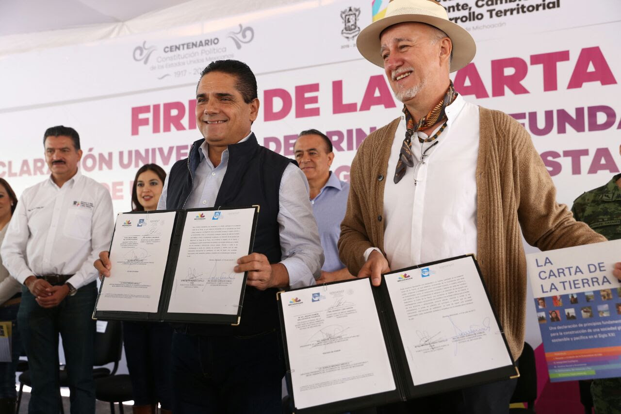 Ahí el representante en México de la iniciativa de la Carta de la Tierra, Mateo Alfredo Castillo Ceja, reconoció al mandatario estatal por sumarse a esta importante iniciativa que abonará a que Michoacán sea el estado más sustentable del país, «pues cuenta con los todos los recursos para hacerlo», abundó.