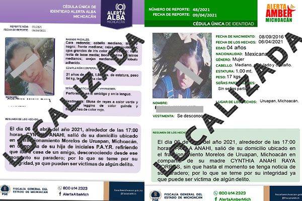 El pasado 6 de abril, C.R.T., y la menor P.Y.R., salieron de su domicilio ubicado en la colonia Morelos sin referir a donde se dirigían, desconociéndose desde ese momento su paradero, motivo por el cual sus familiares presentaron la denuncia correspondiente por temor a que sus vidas corrieran peligro.