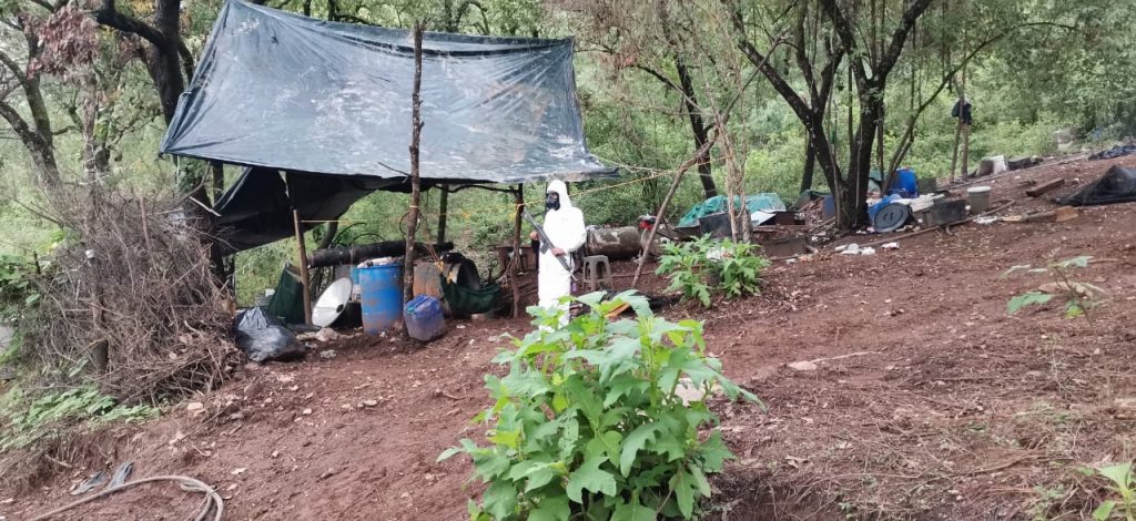 Morelia, Michoacán a 21 de septiembre de 2020.- La Secretaría de la Defensa Nacional a través de las Comandancias de la XII Región Militar y de la 21/a. Zona Militar, informó que en el marco del Plan Nacional de Paz y Seguridad 2018-2024, elementos del Ejército Mexicano en apoyo a las autoridades civiles, localizaron dos laboratorios clandestinos empleados para la elaboración de droga sintética.