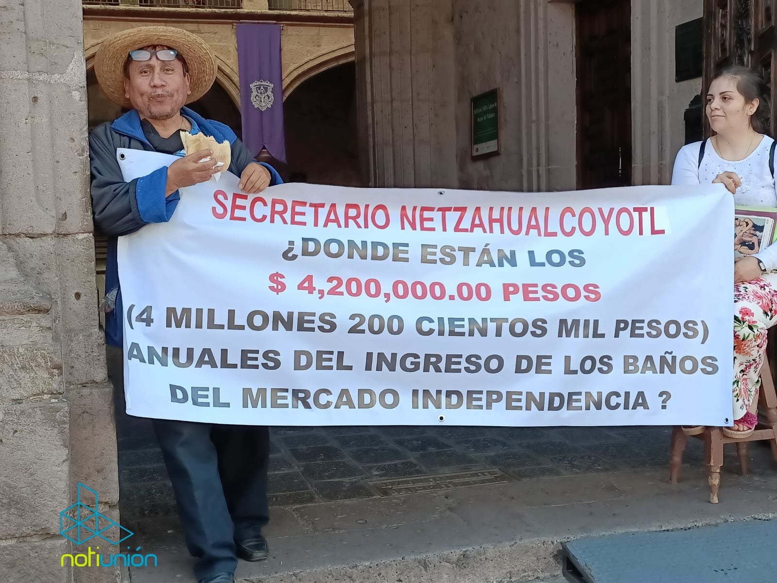 Además, piden al Secretario de Servicios Públicos del H. Ayuntamiento  Netzahualcóyotl Vázquez Vargas, rinda cuentas de los cuatro millones de pesos que se recaudan de los baños públicos del mercado Independencia. Aunado a ello los locatarios aseguran tener diversas problemáticas que tampoco se han atendido.
