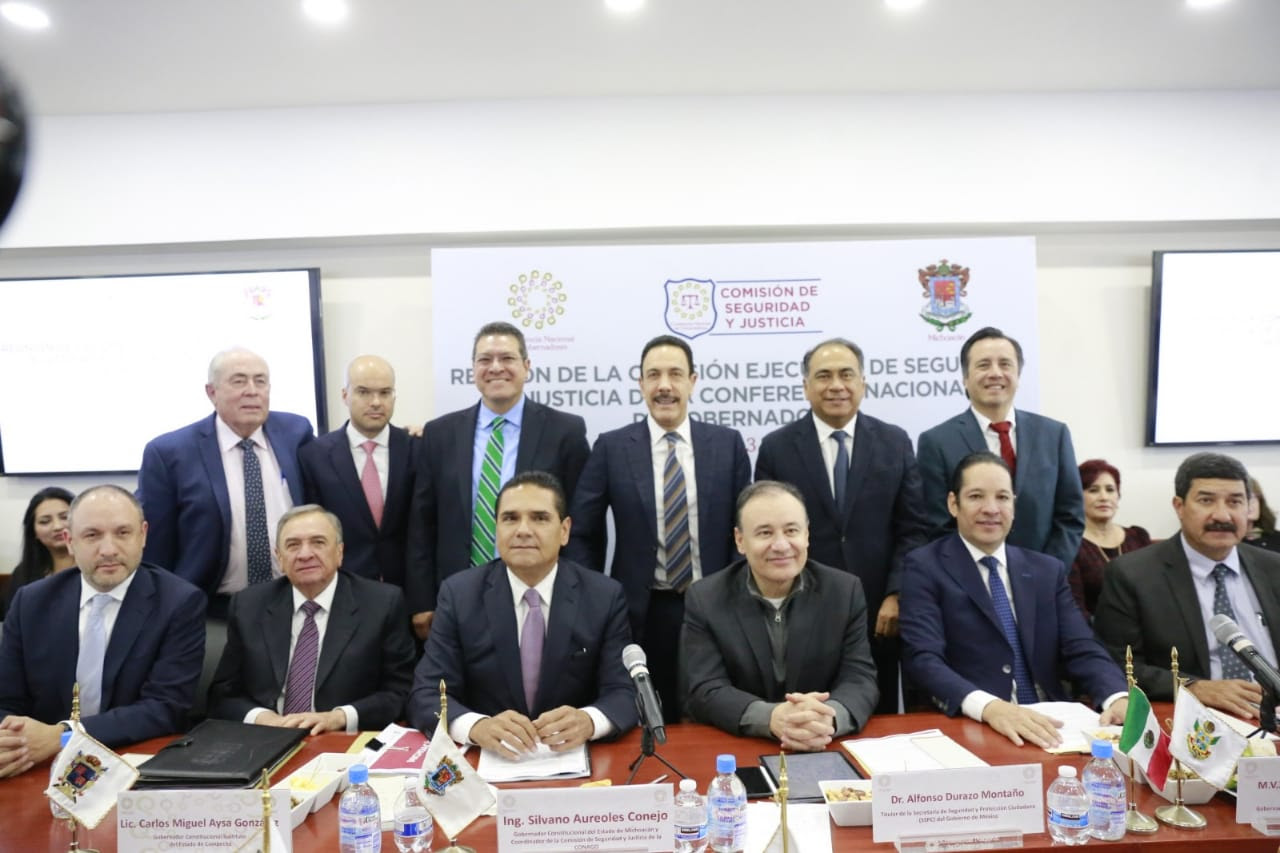 Ciudad de México, 14 de enero de 2020.- En el marco de la primera reunión del año, de la Comisión de Seguridad y Justicia de la Confederación Nacional de Gobernadores (Conago), encabezada por el mandatario michoacano Silvano Aureoles Conejo, Gobernadores y Gobierno Federal acordaron que las Mesas de Coordinación Estatal, sean el eje articulador y operativo de la Estrategia Nacional de Seguridad.