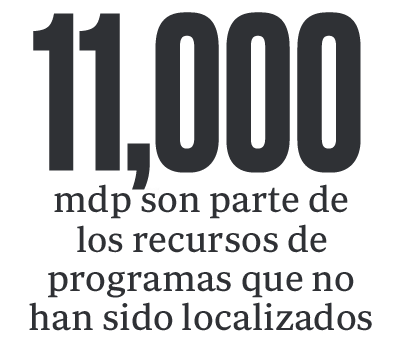 La cifra total corresponde a recursos de programas que no han sido localizados, que presuntamente fueron desviados a otras cuentas bancarias o que no se utilizaron para los objetivos etiquetados.