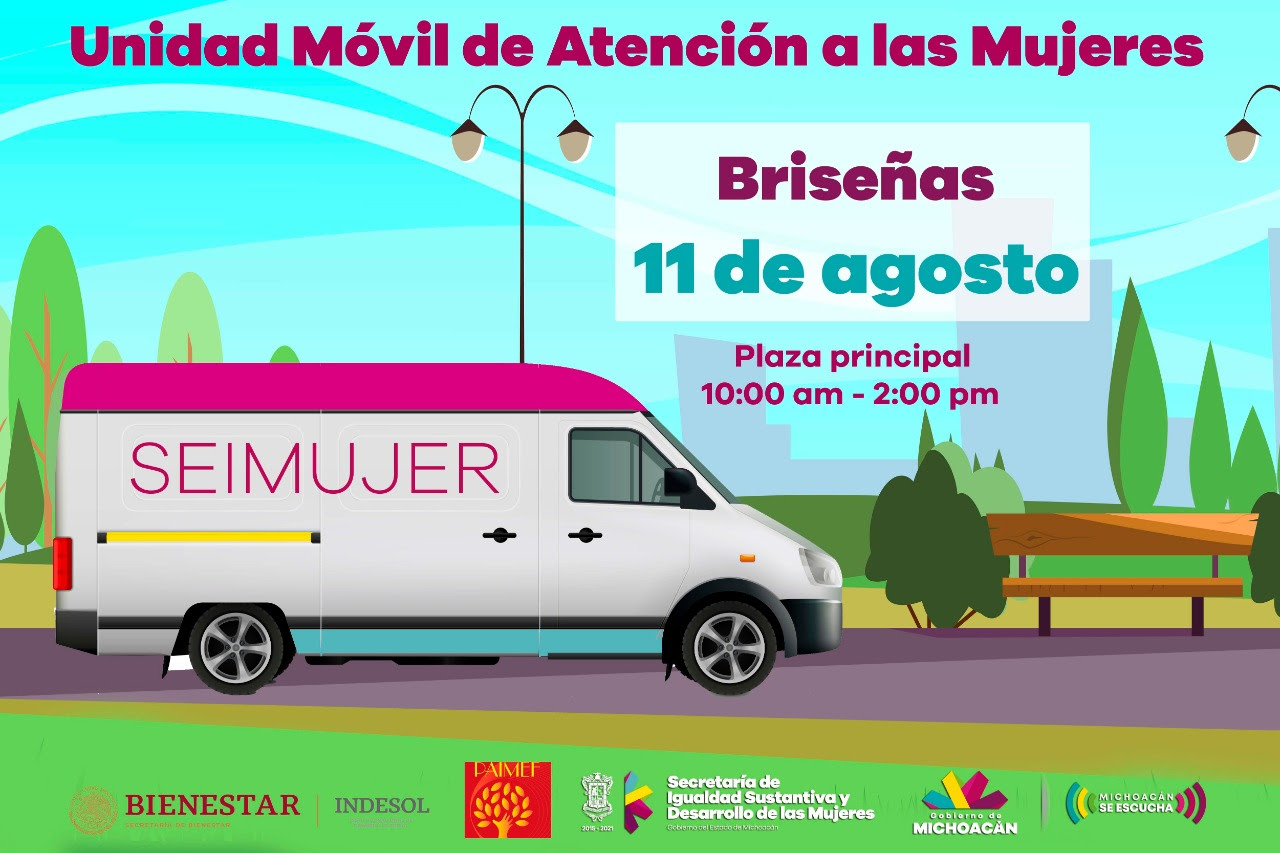 Morelia, Michoacán, a 10 de agosto de 2020.- Con el objetivo de reforzar las medidas de prevención y atención de todas las formas de violencia contra niñas y mujeres al interior del Estado, la Secretaría de Igualdad Sustantiva y Desarrollo de las Mujeres (Seimujer), llevará este 11 de agosto al municipio de Briseñas la Unidad Móvil de Atención.