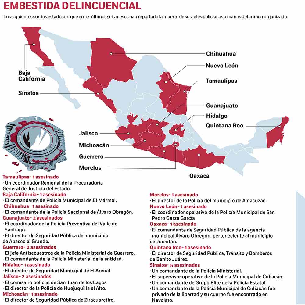 De acuerdo con un recuento, en las últimas semanas la delincuencia ha enfocado sus ataques sobre todo en los encargados de la seguridad pública de los municipios del país.