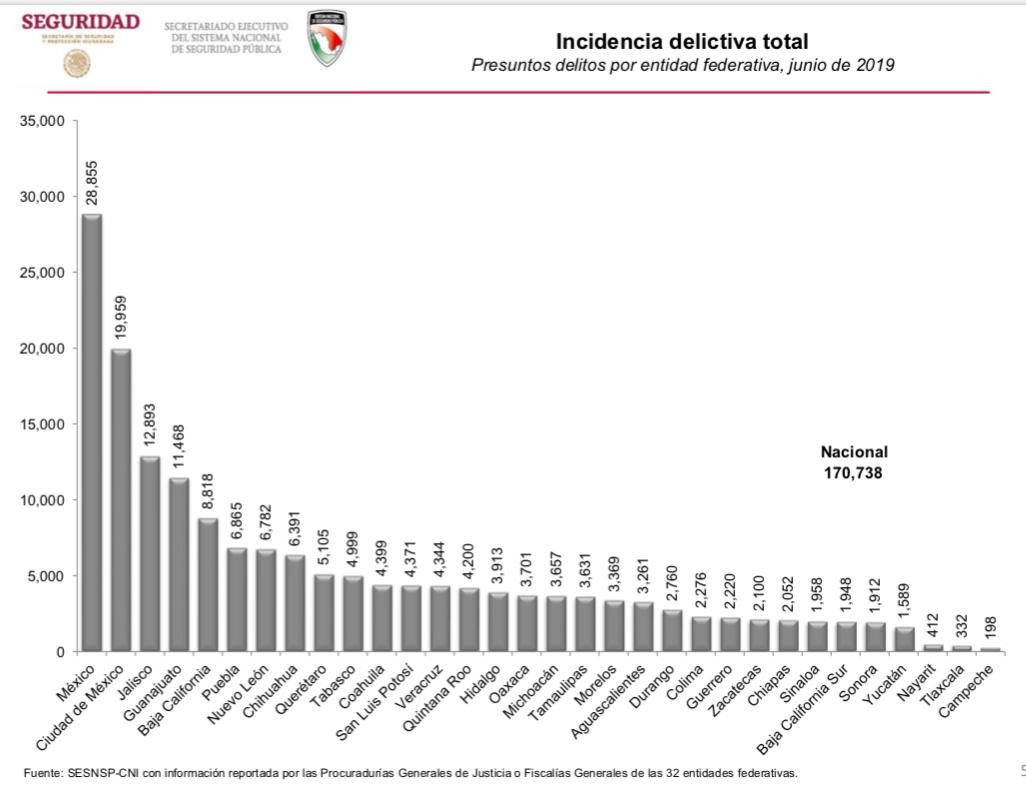 Mientras que, en el apartado de incidencia delictiva total, se encuentra en la media nacional con un registro de 3 mil 657 delitos en el mes de junio, cifra inferior a la de otros 16 estados donde la incidencia más alta llega a 28 mil 885 ilícitos.