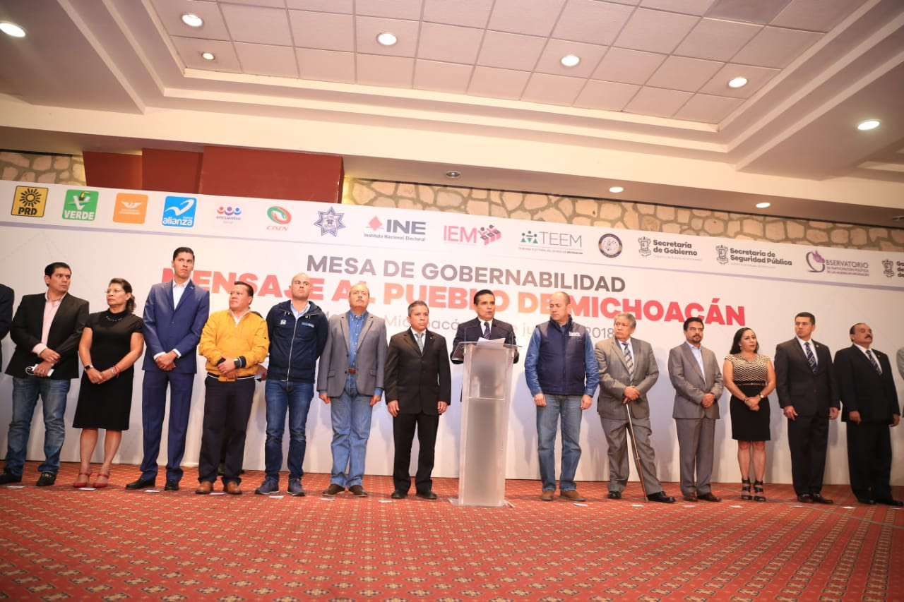 Como titular del Ejecutivo del Estado, agradezco y reconozco la voluntad, el compromiso, y la altura de miras de las diferentes fuerzas políticas para contribuir con el Gobierno, y las autoridades electorales, en el ámbito de nuestras respectivas competencias, en este esfuerzo conjunto de cuidar el desarrollo del proceso electoral en Michoacán como se ha demostrado a través del trabajo permanente y coordinado en esta Mesa de Gobernabilidad.