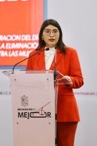 Morelia, Michoacán, 27 de noviembre de 2024.- Michoacán es ejemplo de combate a la violencia contra las mujeres, destacó la titular de la Secretaría de Igualdad Sustantiva y Desarrollo de las Mujeres Michoacanas (Seimujer), Alejandra Anguiano González.